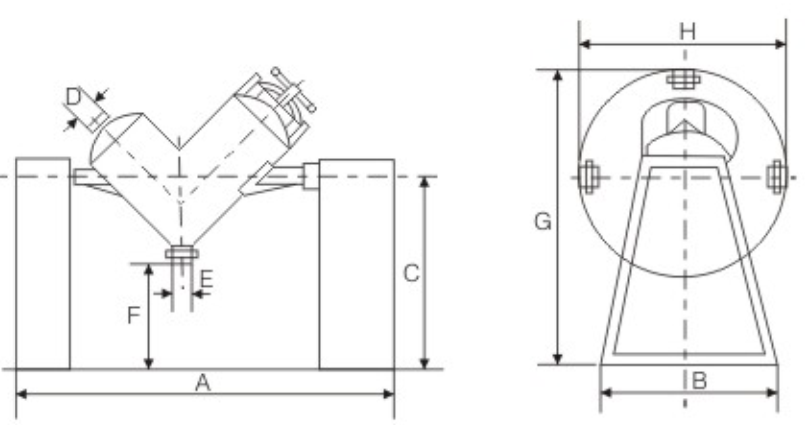 1.V型高效混合機用于流動性較好的干性粉狀、顆粒狀物料的混合。